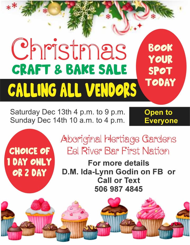 The Aborigional Hertiage Gardens in Eel River Bar First nations is taking place on Saturday and Sunday December 13th and 14th . It’s open to everyone and to book your spot please call Ida-Lynn Godin on face book or text at 506-987-4845